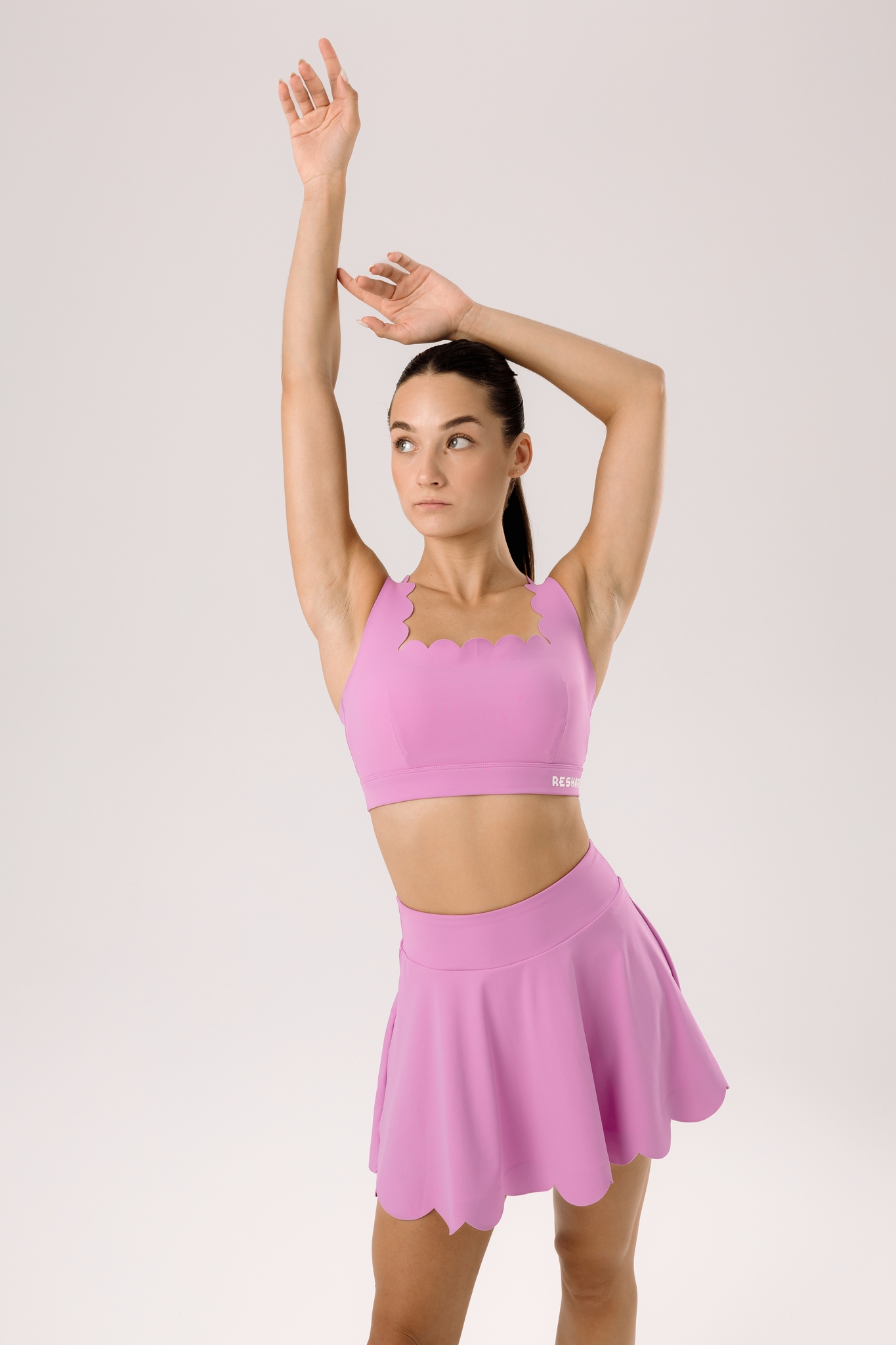 Костюм с юбкой-шортами и топом с волнообразными краями идеально подходит для создания романтичного и женственного образа. Он состоит из топа с открытой спиной с волнообразными краямя и юбки, выполненной в похожем стиле. Укороченный крой подчеркивает талию и создает стильный силуэт. Костюм изготовлен из высококачественного, дышащего материала, который эффективно отводит влагу и быстро сохнет. Топ и юбку можно носить отдельно, сочетая с другими элементами гардероба. Этот костюм станет отличным дополнением к вашему спортивному гардеробу, позволяя вам выглядеть стильно и чувствовать себя комфортно во время любых активностей!
