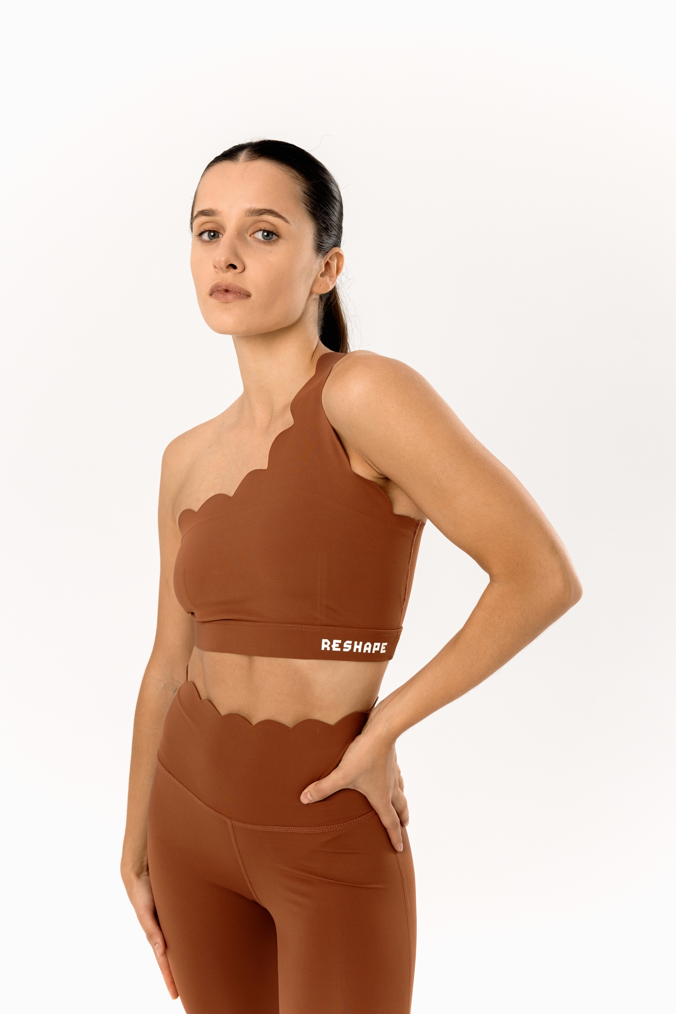 Костюм идеально подходит для занятий фитнесом, йогой или другими активными видами спорта. Его утягивающий эффект и стильный дизайн позволяют не только чувствовать себя уверенно во время тренировок, но и выглядеть модно и привлекательно. Топ имеет уникальный силуэт с волнообразными краями, что придает ему динамичный и модный вид. Топ  обеспечивает надежную фиксацию груди. Легинсы идеально облегают фигуру, подчеркивая линии тела и обеспечивая максимальный комфорт во время тренировок. Элементы костюма легко комбинируются с различными топами, легинсами, футболками и спортивными кофтами, что позволяет создавать стильные образы как для тренировки, так и для прогулок по городу.